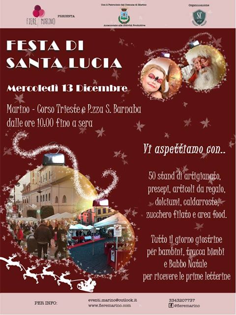 La festa dedicata all'originaria patrona di Marino Santa Lucia si svolge il 13 dicembre, cedendo il titolo di patrono a San Barnaba nel 1619, rimane tuttavia la sua compatrona. Nel rispetto delle antiche tradizioni, oltre alle celebrazioni religiose si organizzano mercatini di merci varie. La sacralità della ricorrenza è celebrata con una processione di giovani ragazze vestite di bianco, che partendo dall'attuale Museo Civico (ex chiesa di santa Lucia) giungono alla Chiesa di San Barnaba.