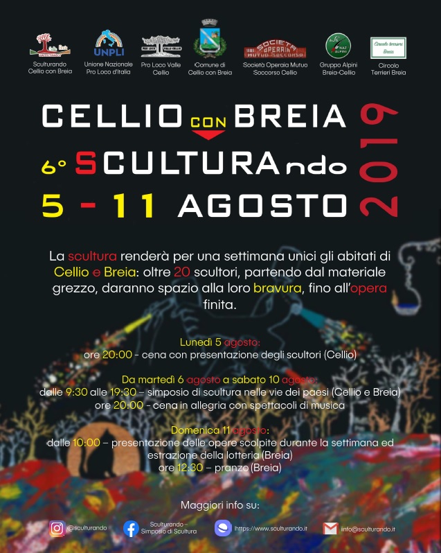 La scultura renderà per una settimana unici gli abitati di Cellio e Breia: oltre 20 scultori, partendo dal materiale grezzo, daranno spazio alla loro bravura, fino all'opera finita.