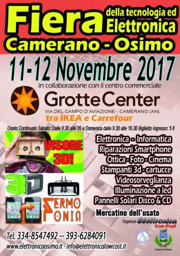 9^ edizione della fiera dell'elettronica di Camerano Osimo un mix perfetto che ritorna al centro Commerciale Grotte Center di Camerano con tante novità del settore, visori 3d di ultima generazione, stampanti 3d, ultime novità per l'illuminzaione a led , pannelli solari e tanto altro ancora oltre 2000 metri di tecnologia , elettronica ed informatica e curiosità