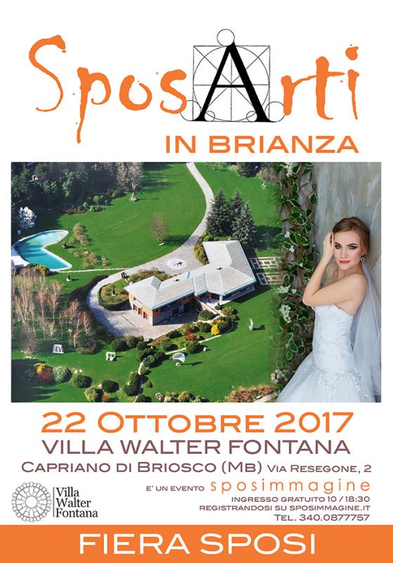 Domenica 22 ottobre 2017 dalle ore 10:00 alle 18:30 per la prima volta Villa Walter Fontana di Capriano di Briosco ospiterà la fiera "SposArti in Brianza" organizzata da Sposimmagine. Circondata da un parco secolare in posizione dominante nel cuore della Brianza, la villa è molto richiesta e apprezzata dalle coppie di sposi per il perfetto connubio di eleganza e modernità, tra suggestive opere d'arte contemporanea di inestimabile valore e soluzioni di comfort all'avanguardia.