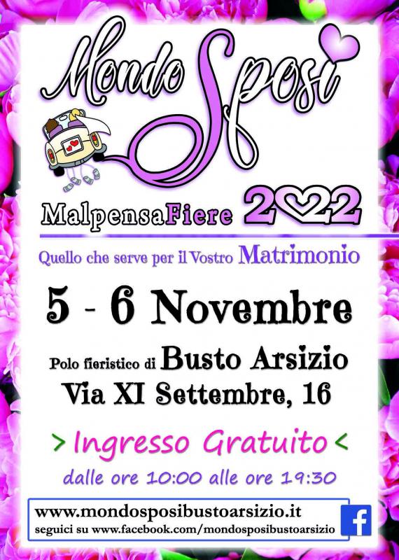 Un appuntamento da non perdere: la fiera Sposi più importante del Varesotto si terrà sabato 18 e domenica 19 Ottobre 2025 all'interno del polo fieristico MalpensaFiere di Busto Arsizio; due giorni dedicati alle future coppie di sposi, dove potranno conoscere i migliori operatori del mondo Wedding ed i relativi servizi: fotografi, videomakers, musicisti, catering, ristoranti, agenzie viaggi, bomboniere, locations, abiti nuziali, allestimenti floreali, noleggio, wedding planner e molto altro ancora !Lo STORICO evento SPOSI presso MalpensaFiere ritorna ricco di proposte e curiosità. Avrete l'opportunità di conoscere di persona e valutare moltissimi operatori del settore dei Matrimoni.Percorrerete due piani di esposizione per trovare il servizio più adatto alle Vostre esigenze.