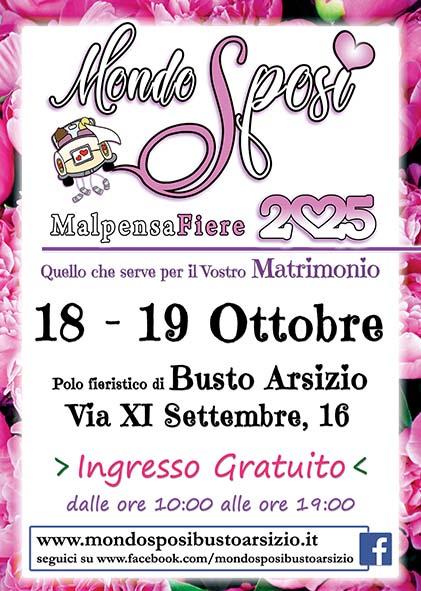 Un appuntamento da non perdere: la fiera Sposi più importante del Varesotto si terrà sabato 18 e domenica 19 Ottobre 2025 all'interno del polo fieristico MalpensaFiere di Busto Arsizio; due giorni dedicati alle future coppie di sposi, dove potranno conoscere i migliori operatori del mondo Wedding ed i relativi servizi: fotografi, videomakers, musicisti, catering, ristoranti, agenzie viaggi, bomboniere, locations, abiti nuziali, allestimenti floreali, noleggio, wedding planner e molto altro ancora !Lo STORICO evento SPOSI presso MalpensaFiere ritorna ricco di proposte e curiosità. Avrete l'opportunità di conoscere di persona e valutare moltissimi operatori del settore dei Matrimoni.Percorrerete due piani di esposizione per trovare il servizio più adatto alle Vostre esigenze.