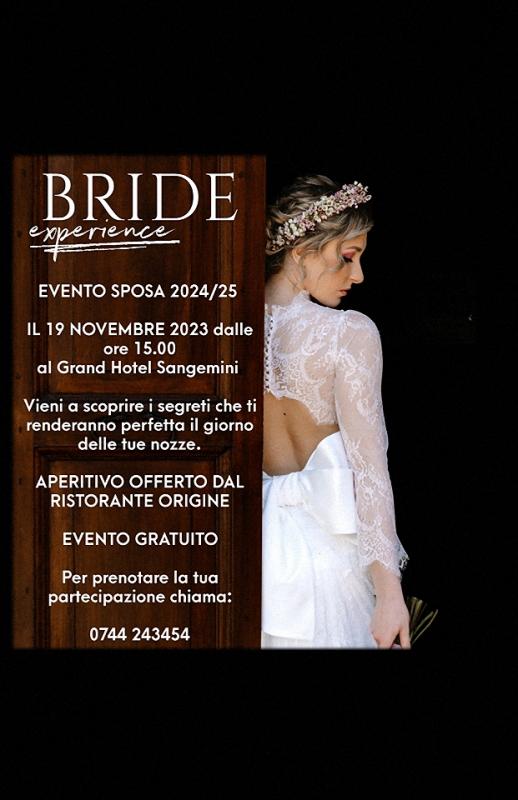 Non perdere l'occasione: unisciti a noi all'evento Bride Experience per svelare i segreti di un'immagine perfetta e trasformarti nella sposa dei tuoi sogni.