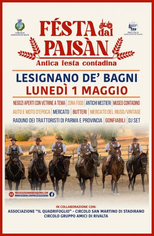 Lunedì 01 Maggio 2023 ritorna la famosa Fésta dal Paisàn a Lesignano de' Bagni.