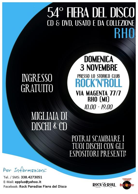 Vi informiamo che Domenica 3 Novembre a RHO, C/O lo storico Club “Rock’n’Roll” situato in Via Magenta 77/7, l’Associazione Culturale Rock Paradise in collaborazione con Rock’n’Roll organizzerà la 54° Fiera del Disco.