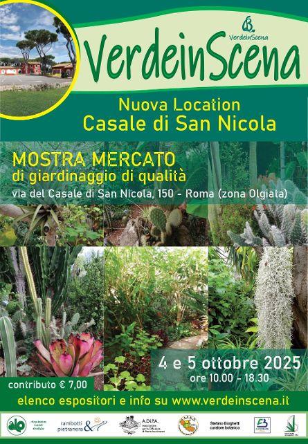 Nuova location per Verde in Scena! Il 4 e 5 ottobre prossimi avrà luogo l'edizione autunno 2025 a Roma, nella splendida cornice del Casale di San Nicola, in via del casale di San Nicola 150, zona Olgiata. Avremo oltre 60 espositori con tante piante di ogni tipo, artigianato di qualità, prodotti per il benessere, food truck e buon cibo, allegra compagnia, in un casale immerso nel verde e circondato da pini e lecci secolari, dove l'ospitalità è la più grande premura.