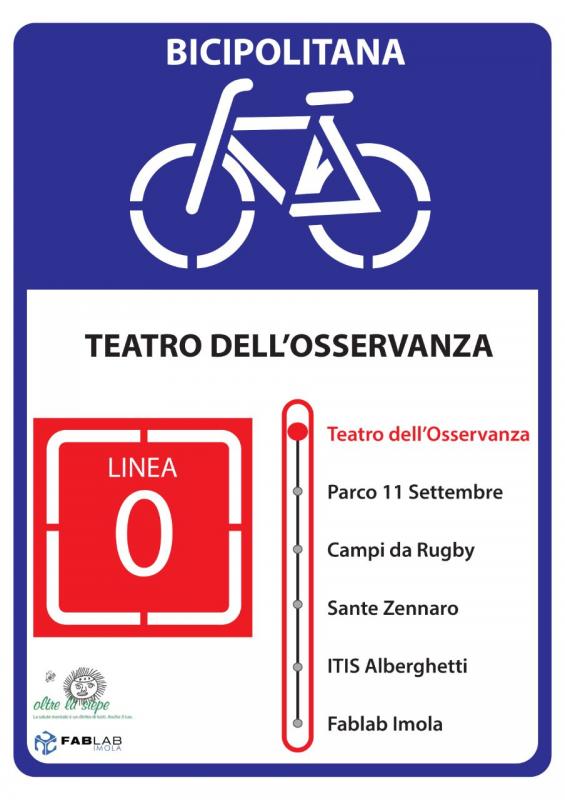In seguito, con cartelli e stencil realizzati al laser dal Fablab ogni squadra creerà la segnaletica stradale della Linea Zero della Bicipolitana nel tratto di pista ciclabile che collega l’Osservanza al Fablab (laboratorio presso ITIS Alberghetti - entrata in Via Kolbe). La Bicipolitana è un circuito di piste ciclabili che ricalca, nella struttura e nell’organizzazione, le metropolitane delle grandi città europee.