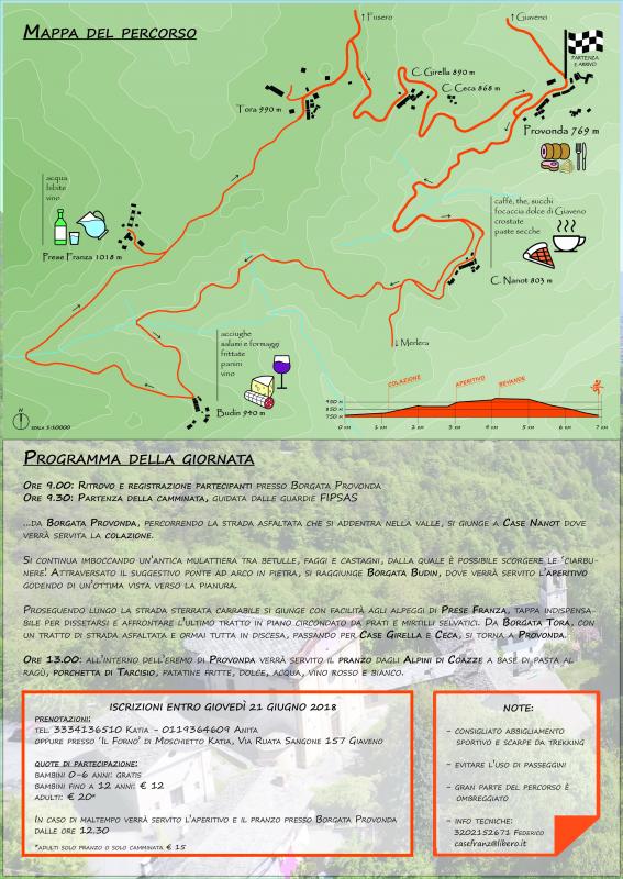 Borgata Provonda - Borgata Nanot - Borgata Budin – Borgata Tora - ritorno a Provonda dove, nella casa parrocchiale,