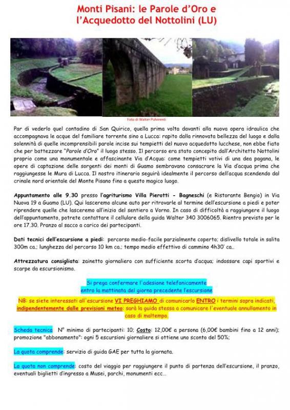 Sabato 18 marzo - L'incanto delle Parole d'Oro e l'Acquedotto del Nottolini (LU)