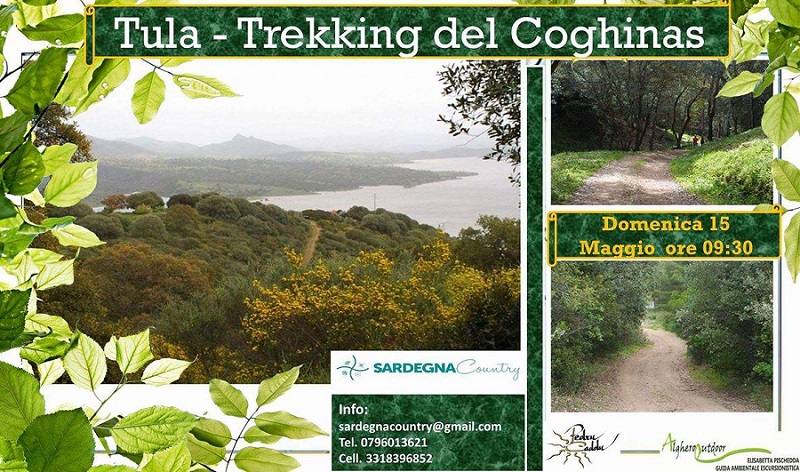 L’Associazione Sardegna Country e la Guida Ambientale Escursionistica Elisabetta Pischedda, organizzano per Domenica 15 maggio 2016: “ Tula - Trekking del Coghinas"; un’ attività di Trekking con partenza dall'ingresso del Cantiere Forestale "Coghinas", lungo la S.P. 2 Tula - Erula, a circa 6 Km. dal paese.
