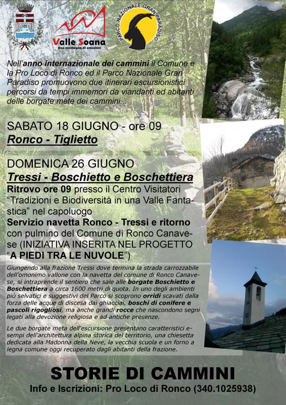 Nell’anno internazionale dei cammini il Comune e la Pro Loco di Ronco ed il Parco Nazionale Gran Paradiso promuovono due itinerari escursionistici percorsi da tempi immemori da viandanti ed abitanti delle borgate mete dei cammini...