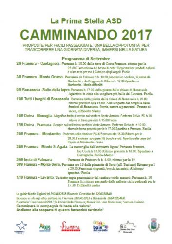 Programma delle escursioni tra Bonassola e i comuni limitrofi che si terrà nel mese di settembre