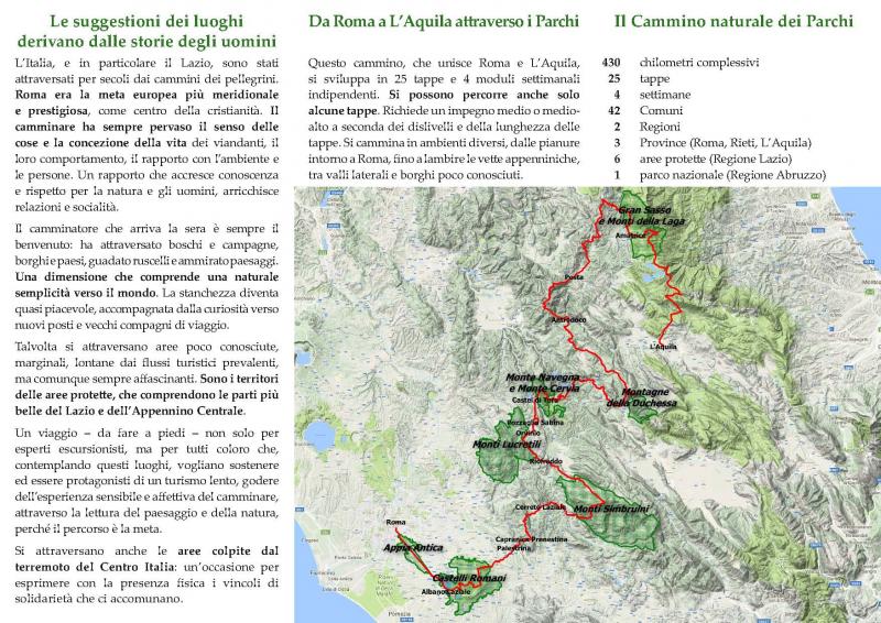 Un ambizioso Cammino di 430 km che con le sue 27 tappe, parte da Roma e arriva a L'Aquila attraversando 7 aree naturali e ben 42 Borghi.
