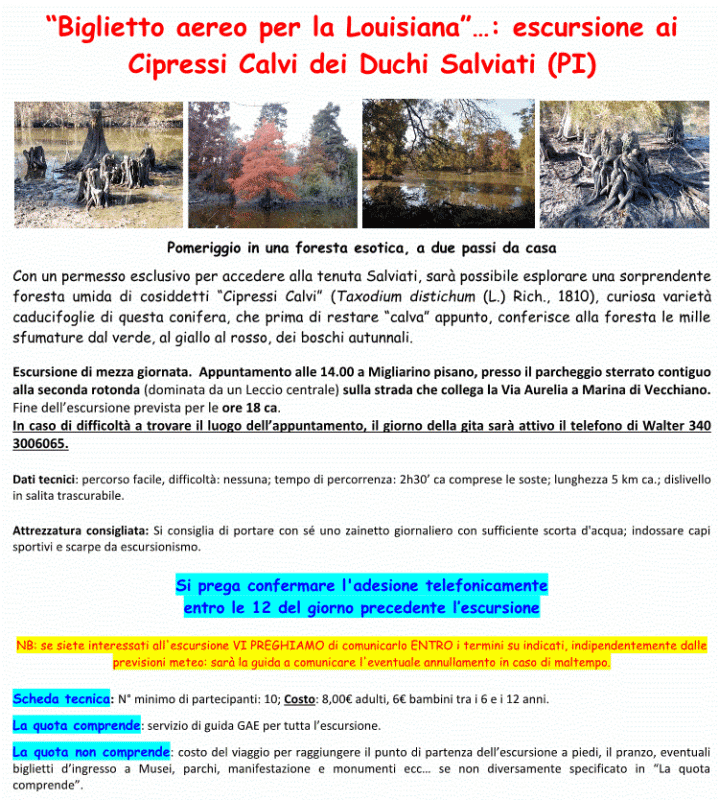 4-nov-17 sa continente NORD - pomeriggio - "Biglietto aereo per la Louisiana": escursione ai Cipressi Calvi dei Duchi Salviati