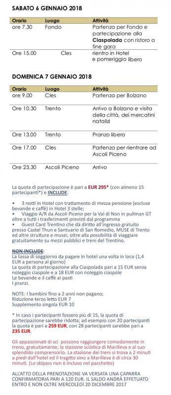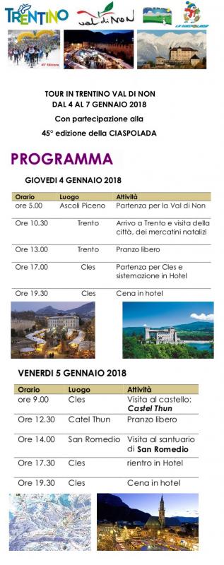 Tour Val di Non e Trentino dal 4 al 7 gennaio 2018