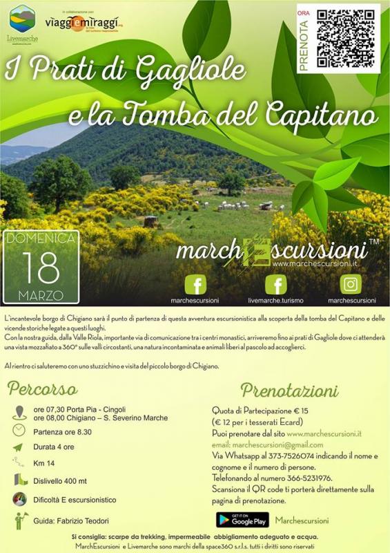 Quota individuale di partecipazione € 15 (€ 12 tesserati Marchescursioni).