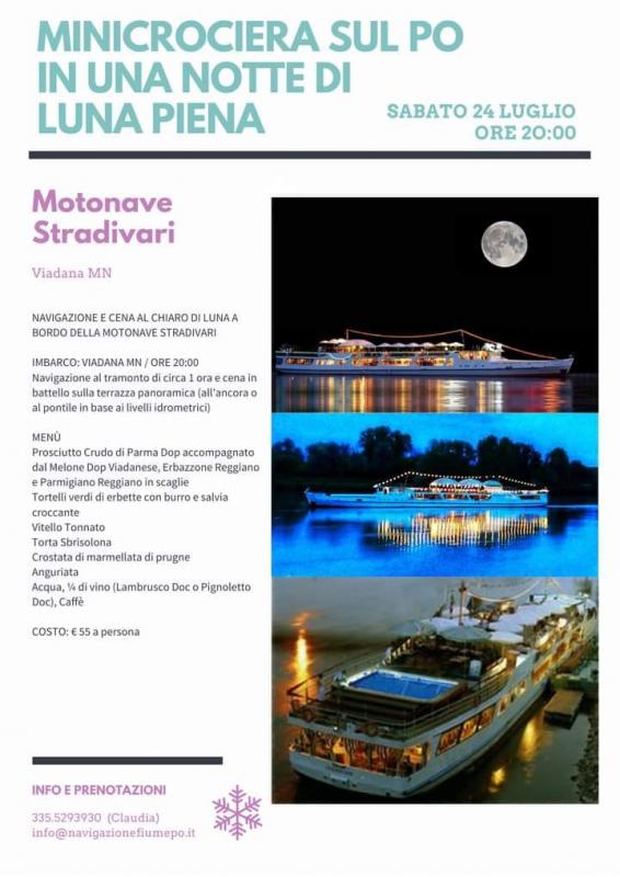 Minicrociera sul Po in una Notte di Luna Piena (Navigazione al tramonto e Cena a bordo in terrazza al chiaro di Luna)