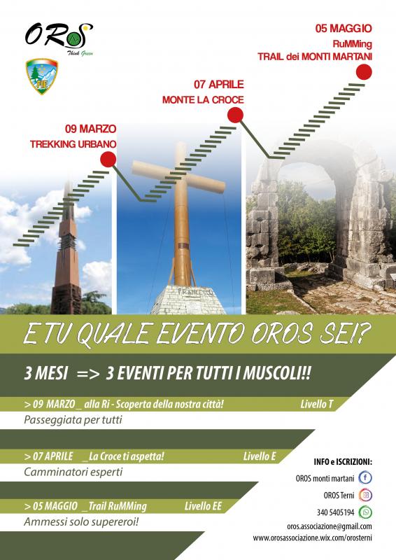 L’intento dell’Associazione è di creare eventi sempre più inclusivi, adatti a tutti i tipi di allenamento fisico ed età; si partirà dunque da un Trekking Urbano, di livello facile (T), alla ri-scoperta del Centro di Terni e delle sue sculture, per poi passare ad una Camminata, di livello intermedio (E), con meta La Croce di Terni, terminando con una Corsa Trail alla scoperta di Torre Maggiore, adatta ad atleti esperti (EE).