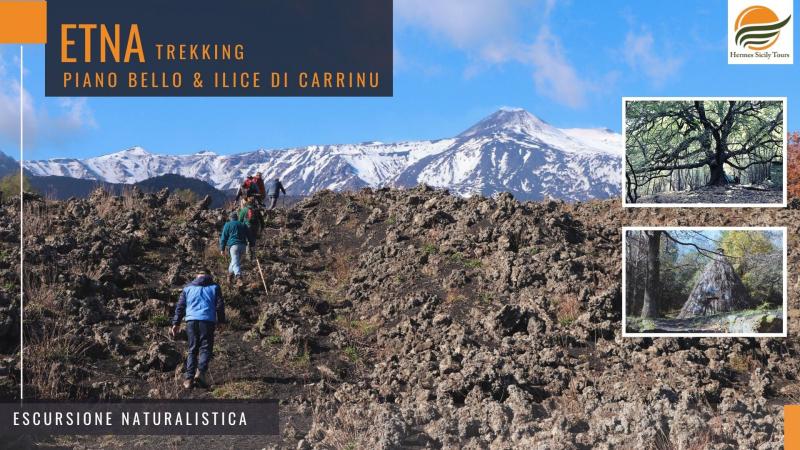 Quest'escursione alle medie quote dell'Etna sarà condotta da una guida naturalisatica dello staff Hermes Sicily Guides & Tours. L'itinerario ci porterà alle medie quote del vulcano, attraverso uno dei più suggestivi boschi etnei e poi a lambire la Valle del Bove per ammirare il lontananza la sommità dell'Etna. Il percorso ci condurrà anche all'Ilice di Carrinu, uno degli alberi monumentali presenti sul vulcano.