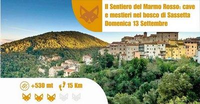 Camminando lungo sentieri ricchi di fascino raggiungeremo il Monte Bufalaio, luogo sorprendente e poco conosciuto, dove la montagna conserva ancora le tracce di un’attività che ha segnato profondamente la storia del territorio: l’estrazione del prezioso marmo rosso .