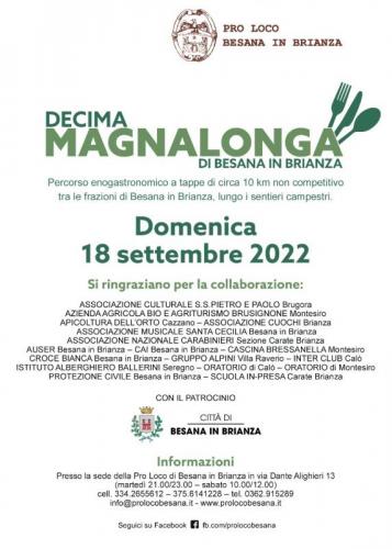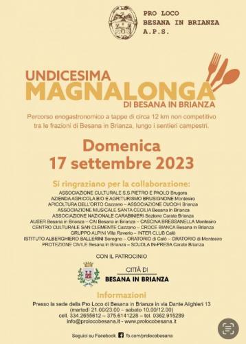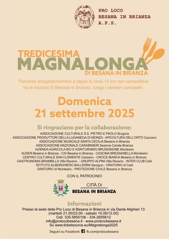 Domenica 21 settembre, la Pro Loco di Besana in Brianza organizza la 13a edizione della Magnalonga della Città di Besana in Brianza, un evento ormai entrato nel calendario besanese.