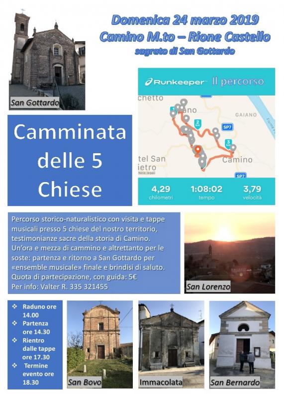 Percorso storico-naturalistico con visita e tappe musicali presso 5 chiese del nostro territorio, testimonianze sacre della storia di Camino.
