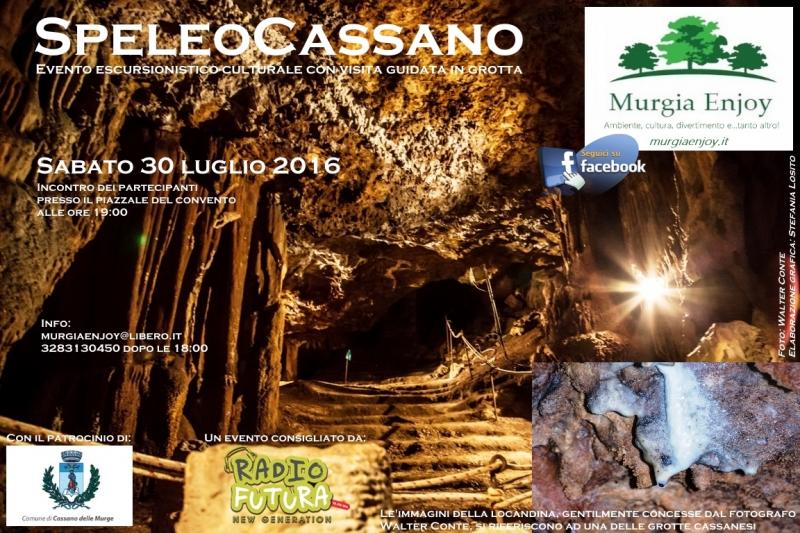 "SpeleoCassano" vuole essere una concreta opportunità, accessibile a tutti grazie alla presenza dei soci Murgia Enjoy, alcuni dei quali speleologi, per scendere in tutta sicurezza in grotta permettendo ai partecipanti di entrare in ambienti sotterranei precedentemente utilizzati dall'uomo, dove un esperto spiegherà i fenomeni che hanno permesso la formazione di queste grotte insite nel nostro prezioso territorio, la cui valorizzazione e tutela è troppo spesso abbandonata al solo impegno dei volontari Murgia Enjoy.