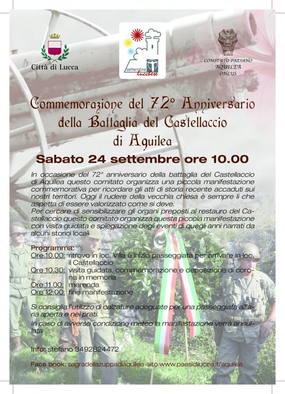 Aquilea LU - sabato 24 settembre 2016 passeggiata storico culturale per ricordare la battaglia del 24 settembre 1944 dove dopo 3 girni di bombardamento le forse alleate presero il soppravventu sul castellaccio avamposto militarizzato della linea gotica in luccheisa
