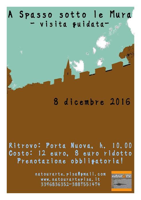 I 7 km della cinta muraria di età comunale rappresentano un unicum nel panorama mondiale delle “città murate” medievali: un patrimonio da scoprire o riscoprire, che vi invitiamo a osservare con occhi nuovi attraverso la lente di Natourarte…A spasso sotto le mura della parte di Tramontana, dall’area di Piazza dei Miracoli fino a Piazza delle Gondole, riconosceremo le fasi costruttive delle mura, le tecniche murarie, i materiali utilizzati nella costruzione: da dove provenivano le pietre? come arrivavano in città? come si distinguono le diverse fasi edilizie? quali sono le porte originarie e quelle aperte successivamente?….Ma non solo: qual era l'ambiente che originariamente circondava le mura? I “borghi” extra moenia? E come si è sviluppata la città tra XI e XIII secolo?Vi aspettiamo per questa piacevole passeggiata sotto le mura in compagnia delle guide di Natourarte, Linda Paolini e Francesca Origlia.