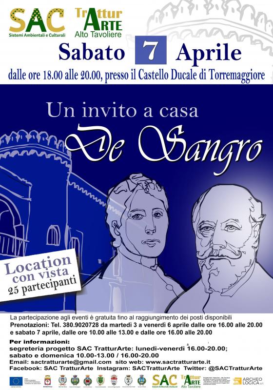 Sabato 7 aprile, dalle ore 18.00 alle 20.00, presso il Castello Ducale di Torremaggiore si svolgerà l’appuntamento ‘Un invito a casa De Sangro’, dedicato a un numero massimo di 25 partecipanti.