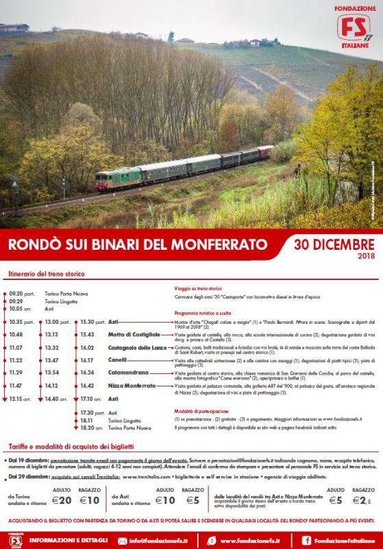 L’evento “Rondò sui binari del Monferrato” che propone un itinerario con escursioni attraverso il “treno storico-turistico” con carrozze anni ’30 trainate da una locomotiva diesel in livrea d’epoca che transiterà nel Monferrato domenica 30 dicembre, offre una splendida occasione per visitare Costigliole d’Asti e il suo meraviglioso castello, scendendo alla stazione “Motta di Costigliole”.
