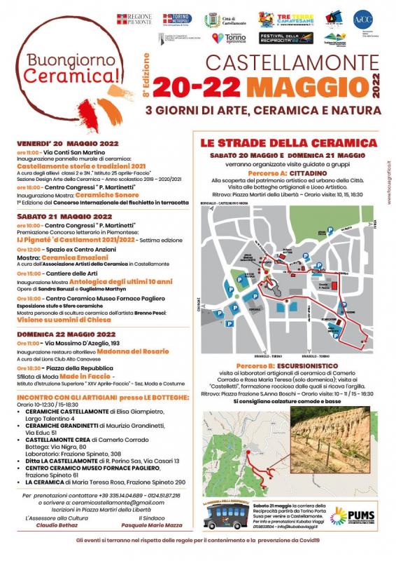 Ecco, una nuova proposta di escursione da Torino in bus di Tre Terre Canavesane, Città metropolitana di Torino e Consorzio operatori turistici Valli del Canavese: una bellissima giornata a Castellamonte per “Buongiorno Ceramica!” per sabato 21 maggio.