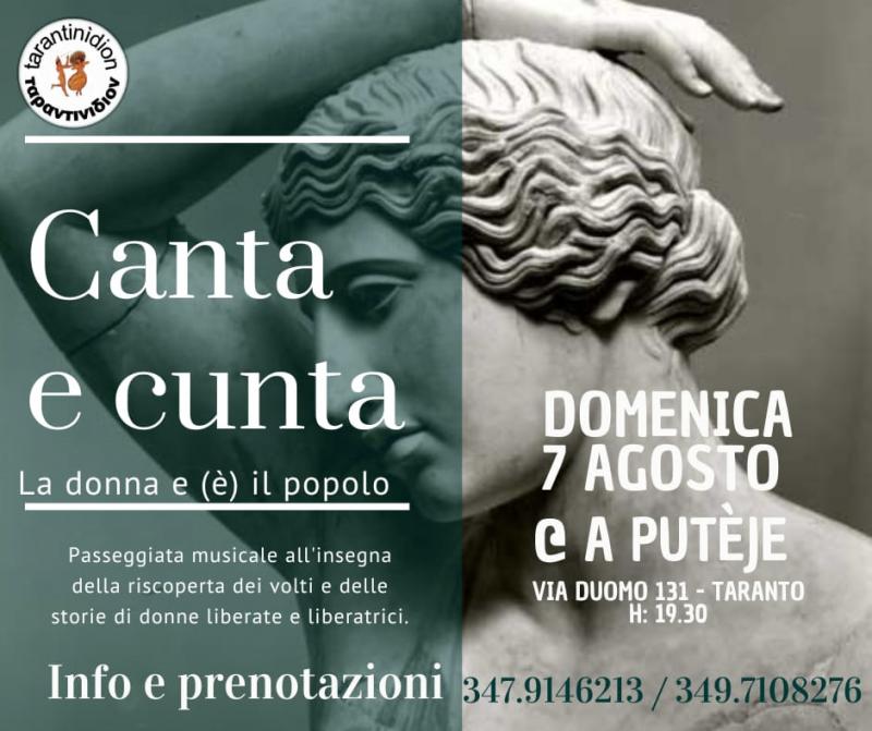 vi invita ad una passeggiata musicale al femminile, “cantata e raccontata” fra i vicoli di Taranto vecchia.