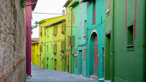 Panoramica escursione attorno al borgo colorato di Ghizzano, piccolo centro della Valdera già proprietà della diocesi di Volterra ed oggi uno dei luoghi più fotografati della Toscana grazie alle sue variopinte facciate che si armonizzano con i colori della campagna circostante.Ammireremo la coloratissima Via di Mezzo dipinta dall'artista inglese David Tremlett e le particolari installazioni d'arte contemporanea prima di dirigerci verso l'infinita teoria di colli che formano l'ondulata campagna di questa parte della Toscana.Cammineremo immersi in un contesto di alto valore paesaggistico tra i colori delle argille e le ampie vedute su di una campagna immersa tra borghi d'indiscusso fascino come Lajatico, Montecatini Val di Cecina e Volterra.Un percorso avvincente dove i colori della natura si fondono con i verdi dipinti del borgo, i rigogliosi boschi di leccio intersecano ondulati colli zollati, i pascoli delle fulve mucche pisane si adagiano all'orizzonte e l'uomo si immerge nel suo elemento naturale.