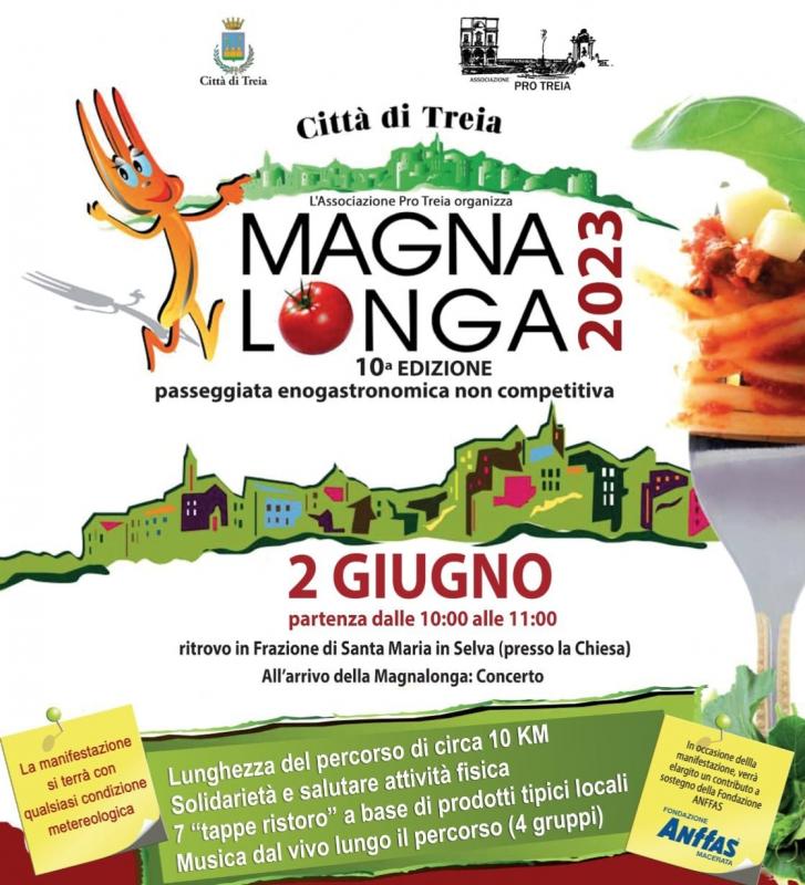 Ritorna la MAGNALONGA CITTA' DI TREIA, quest’anno giunta alla decima edizione. Passeggiata enogastronomica non competitiva con un nuovo percorso, 7 tappe ristoro con prodotti tipici locali.