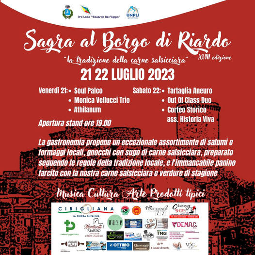 Torna dal 21 al 22 Luglio 2023 la Sagra Al Borgo Riardo.