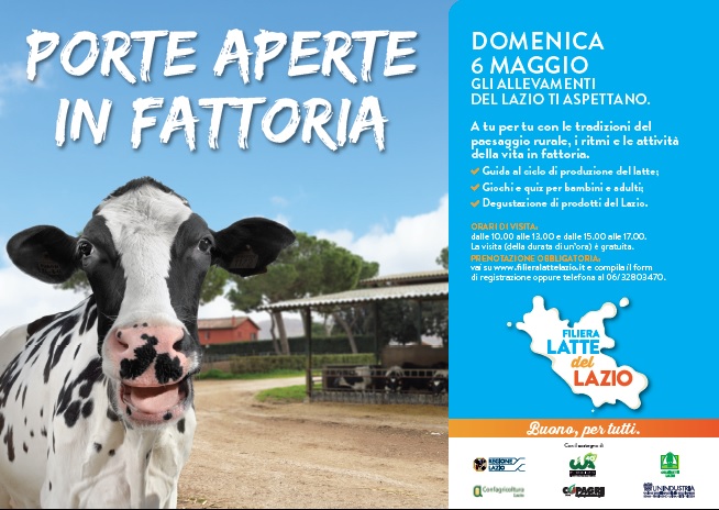 Domenica 6 maggio riparte “Porte aperte in fattoria”, l’iniziativa educativa ideata e organizzata dalla Filiera Latte del Lazio per far conoscere la vita, le abitudini e i valori che caratterizzano le aziende agricole del territorio dove nasce il buon latte del Lazio.
