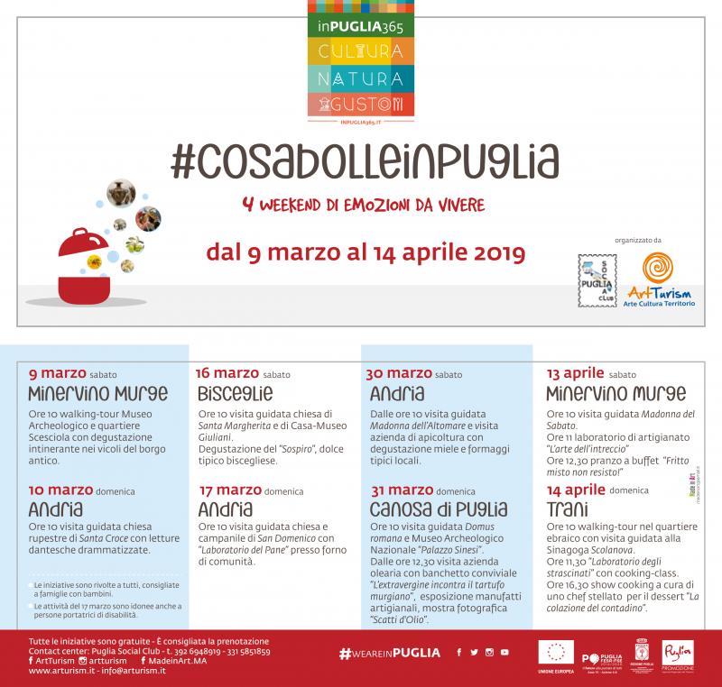 Proseguono con un ottimo risultato, in termini di partecipazione, le iniziative inserite nel programma #CosabollebolleinPuglia, ideato e curato dalla cooperativa sociale Puglia Social Club, aggiudicataria, con l'associazione ArtTurism, del bando regionale Inpuglia365.