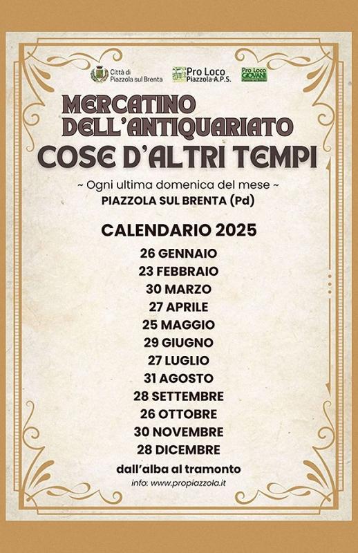 Vi aspettiamo al prossimo Mercatino dell’Antiquariato di Piazzola sul Brenta!