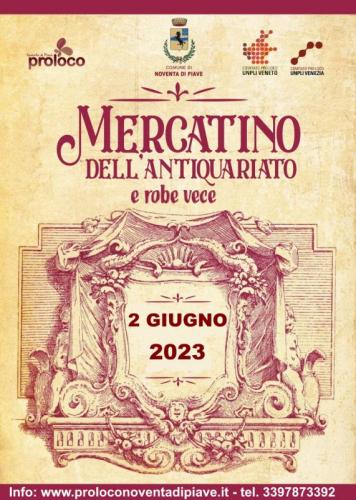 NUOVO APPUNTAMENTO COL “MERCATINO DELL’ANTIQUARIATO E ROBE VECE” A NOVENTA DI PIAVE. VENERDÌ 2 GIUGNO 2023 DALLE 8,30 ALLE 18,30 RITORNANO GLI ESPOSITORI CON NUOVE PROPOSTE DI VECCHIE COSE. PER UN TOCCO DI CLASSE UNICO PER LA TUA CASA O PER L’OGGETTO PARTICOLARE PER IL TUO HOBBY. VI ASPETTIAMO NELLE LOCATION STORICHE DEL MERCATINO IN CENTRO A NOVENTA DI PIAVE (Piazza V. Emanuele, via Piave, Golena del Piave). E vi ricordiamo l’ampia disponibilità di parcheggio e, dopo un giro al mercatino e una visita del centro, l’eccezionale offerta enogastronomica che tradizionalmente Noventa offre ai visitatori e ai turisti.