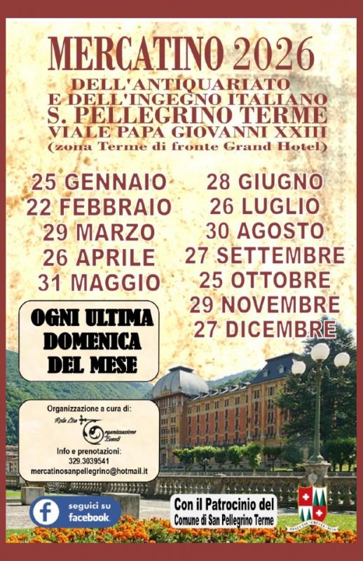 Il Mercatino dell'Antiquariato e dell'ingeno italiano a San Pellegrino Terme si svolge ogni ultima domenica del mese sul Viale Papa Giovanni XXIII.
