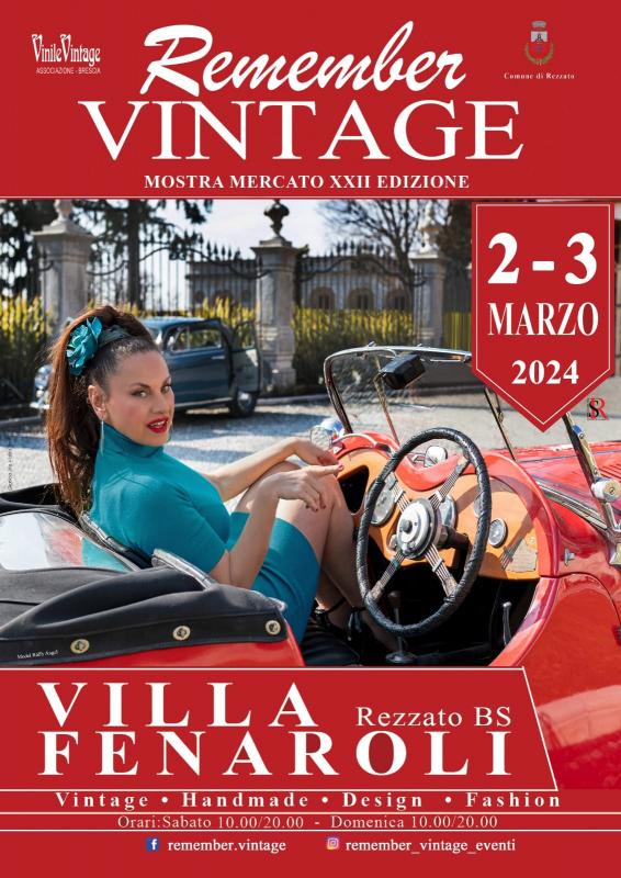 Dopo il successo dell’edizione autunnale, sabato 2 e domenica 3 marzo 2024 dalle ore 10:00 alle ore 20:00 si respirerà ancora aria di altri tempi nei saloni e nelle gallerie di Villa Fenaroli con la nuova edizione di REMEMBER VINTAGE, la mostra mercato dedicata non solo al vintage ma anche al modernariato, al design, all’handmade e al collezionismo d’epoca.