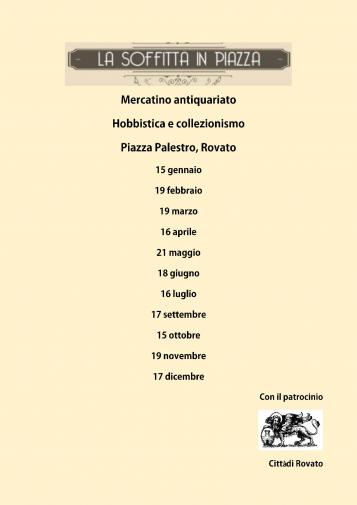 Il mercatino dell’antiquariato e hobbistica di Rovato (BS) denominato La soffitta in Piazza, riprende e si svolgera ogni terza Domenica del mese in Piazza Cavour