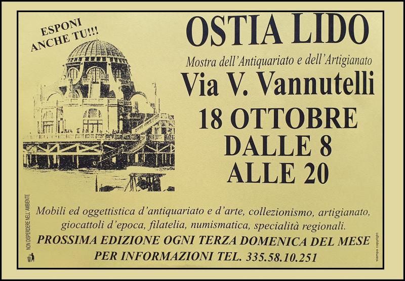 In Via V. Vannutelli a Ostia Lido, frazione del Comune di Roma si svolge ogni Terza Domenica del Mese la Mostra dell'Antiquariato e dell'Artigianato.