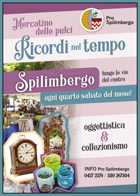Lungo le Vie del Centro di Spilimbergo in provincia di Pordenone si svolge ogni quarto Sabato del Mese il Mercatino delle Pulci "Ricordi nel Tempo".