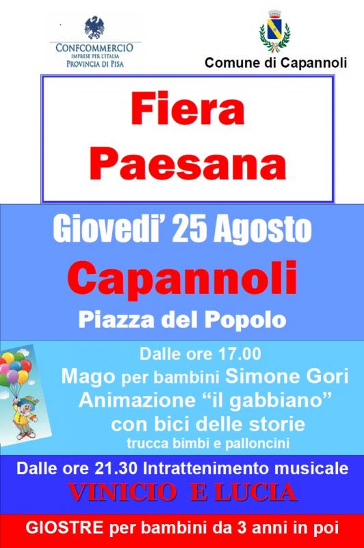 Festa giovedì 25 agosto 2016 con la Fiera Paesana di Capannoli: