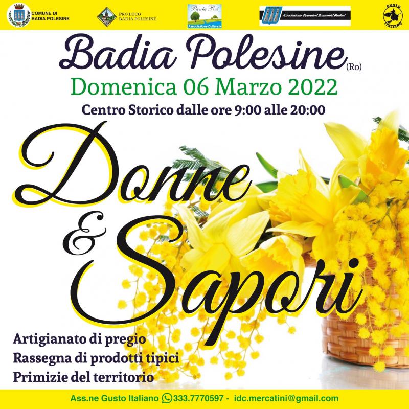 Domenica 6 marzo in centro storico, dalle ore 9.00 alle ore 20.00, si terrà il mercatino "Donne & Sapori", artigianato di pregio, rassegna di prodotti tipici, prodotti del territorio, organizzato dalle associazioni Pro Loco, Panta Rei e Operatori Economici Badiesi, in collaborazione con l'Amministrazione Comunale.