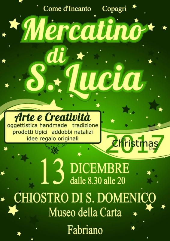 Il tradizionale mercatino di Santa Lucia quest'anno torna nella sua sede storica: il chiostro del Complesso di S. Domenico ora Museo della Carta e della Filigrana, dove gli espositori presentano i loro prodotti tutti rigorosamente fatti a mano e artigianali, idee regalo originali e creative per un felice Natale.