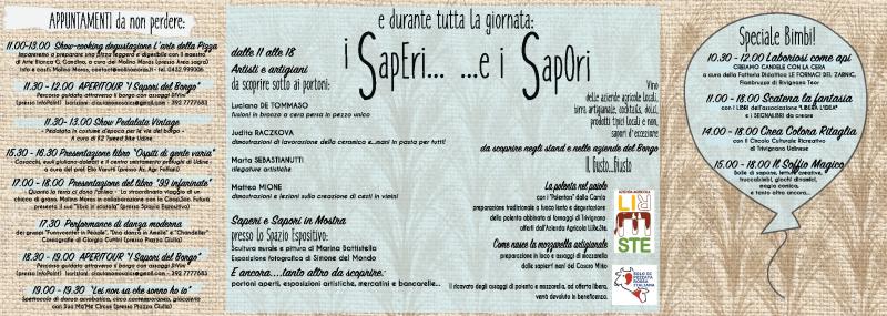 spettacolo teatro acrobatico, artigianato artistico, laboratori - animazione bimbi, danza contemporanea, presentazione libri, show cooking pizza, la polenta nel paiolo (preparazione e degustazione con i Polentars). E ancora formaggio e mozzarella artigianale, vino delle aziende locali, birra artigianale, cocktails, prodotti tipici, mostra d’arte presso l’Art Exhibition Gallery e tanto altro ancora… Da non perdere anche la notte romantica del fuoco di sabato 25 giugno!