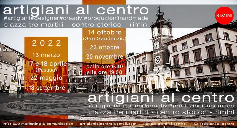 Il Mercatino Artigiani al Centro si svolge una domenica al mese nel centro storico di Rimini, in piazza Tre Martiri. (ad esclusione di giugno , luglio, agosto)